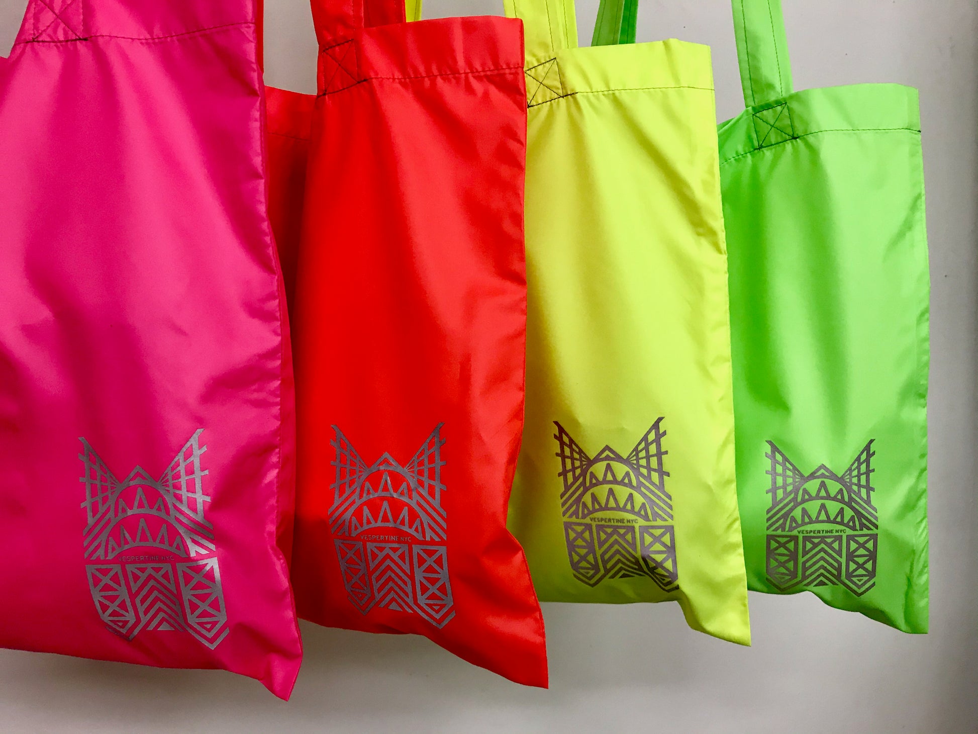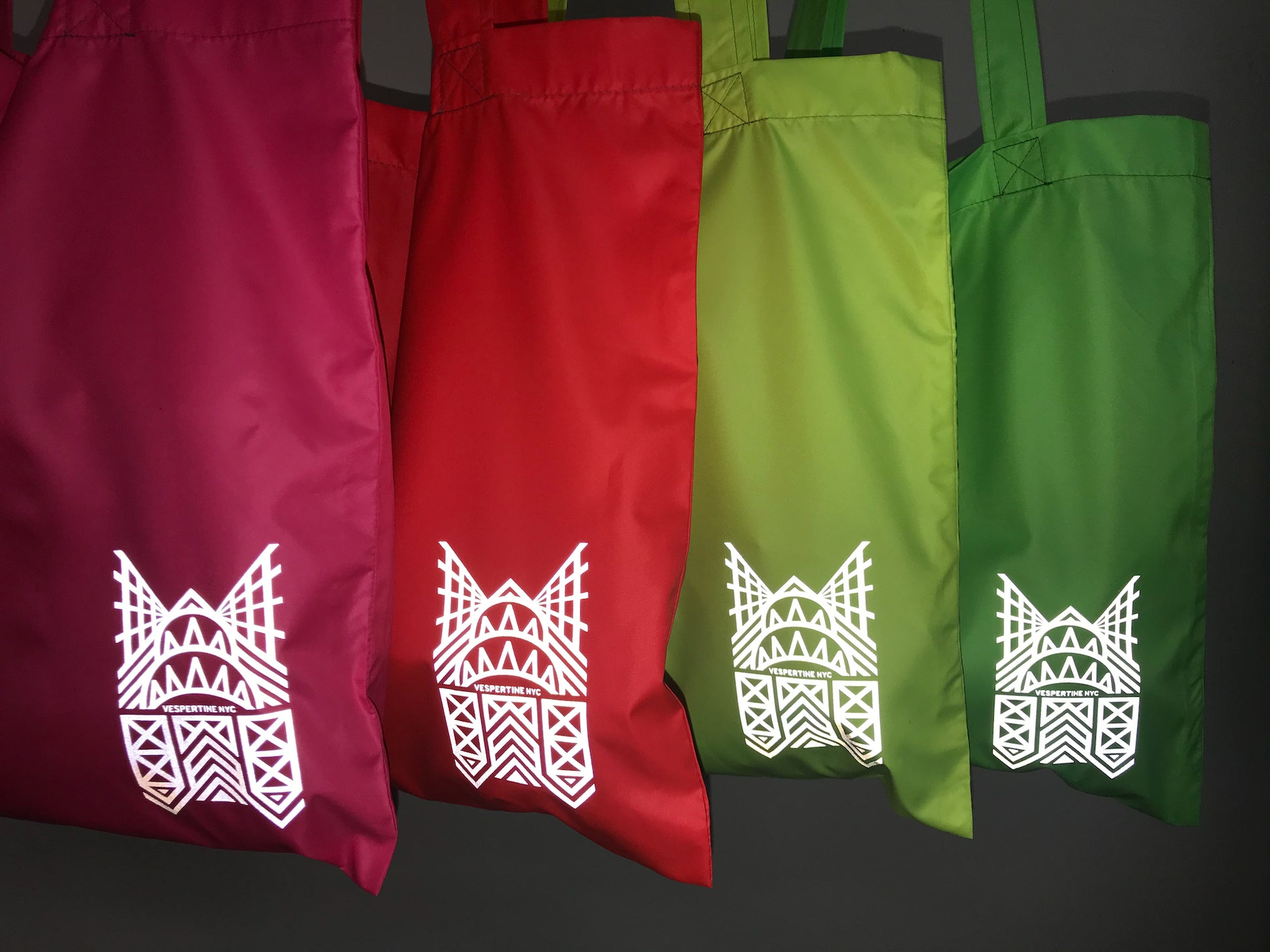 Water-resistant with a cool graphic, reflective Vespertine NYC logo that celebrates the architectural icons of NYC, the Brooklyn Bridge, the Manhattan Bridge, the Chrysler Building and the Bike Lanes, our fav!